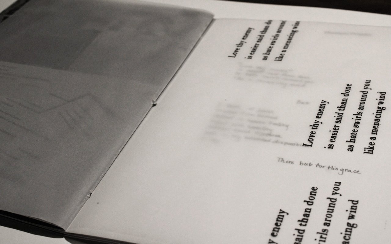Identity is exclusively individual. It is not linear. It is a process of independent exploration and a slow discovery. It is shaped by one’s experiences and through those experiences one’s identity is molded into the individual one seeks to become. One cannot run from it. One must face it. After all, if one doesn’t know who one is, who will? It’s Personal approaches the subject of identity from a wholly idiosyncratic and spiritual perspective. My experiences growing up as a Seventh Day Adventist are expressed in six letterpress printed poems with hand-drawn typography. The poems are deeply personal, expressions of lived experiences that have shaped my identity. How have your experiences shaped yours?